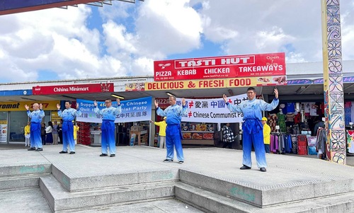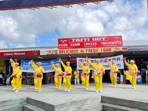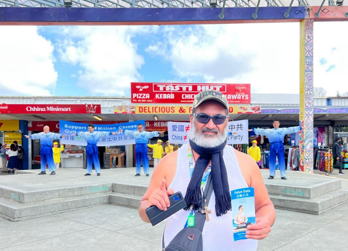 (Minghui.org) Praktykujący zorganizowali wydarzenie 27 września 2025 roku na targu Otara w Auckland w Nowej Zelandii. Wykonali ćwiczenia Falun Dafa, zaprezentowali bębny biodrowe i taniec smoka, aby uczcić ponad 450 milionów Chińczyków, którzy wystąpili z organizacji Komunistycznej Partii Chin (KPCh). Wiele osób zgodziło się z zasadami Falun Dafa: Prawdą, Życzliwością i Cierpliwością, i wezwało do sprzeciwienia się tłumieniu tej praktyki przez KPCh.
