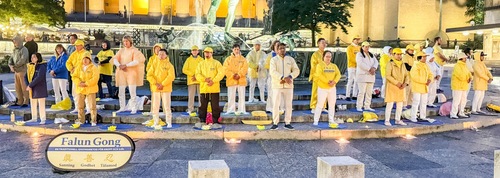 W mżawce i migoczącym blasku świec praktykujący Falun Gong upamiętnili tych, którzy stracili życie w ciągu ostatnich 26 lat w wyniku tortur stosowanych przez KPCh, a nawet w wyniku grabieży organów. Wielu przechodniów przyjmowało ulotki i rozmawiało z praktykującymi.