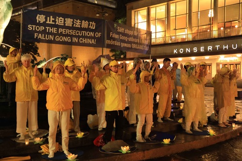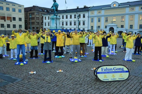 Następnego dnia, po wiecu i paradzie, praktykujący Falun Gong udali się na plac Götaplatsen, gdzie 20 września odbyło się kolejne czuwanie ze świecami. Wiele osób wychodzących z sali koncertowej po zachodniej stronie placu widziało praktykujących spokojnie ćwiczących i medytujących w deszczu. Przyjmowali oni materiały lub długo rozmawiali z praktykującymi, aby dowiedzieć się więcej.