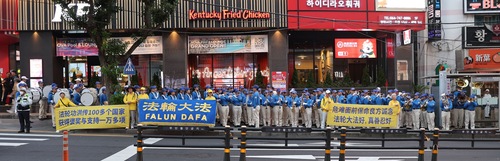 W sklepie wolnocłowym Shilla liczni chińscy turyści słuchali muzyki Orkiestry Marszowej Tian Guo i czytali plakaty. Niektórzy rozmawiali z praktykującymi, poznali fakty na temat Falun Dafa i postanowili wystąpić z organizacji KPCh.