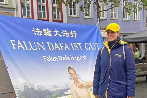 (Minghui.org) Tuż przed Świętem Środka Jesieni 2025 roku praktykujący Falun Dafa zebrali się w Erfurcie w Niemczech, aby złożyć serdeczne pozdrowienia założycielowi Falun Dafa, panu Li Hongzhi. Oprócz wyrażenia najgłębszego szacunku i wdzięczności Mistrzowi Li, opisali również, jak praktykowanie Falun Dafa poprawiło ich zdrowie i moralność.