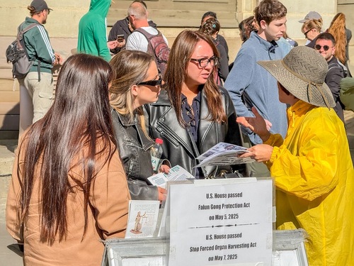 Młoda kobieta z Chin zatrzymała się, aby porozmawiać i powiedziała, że pracuje w branży e-commerce. Opowiedziała, jak podczas pobytu w Chinach często korzystała z narzędzi programistycznych, aby ominąć blokadę internetową nałożoną przez KPCh i mogła czytać relacje z mediów prowadzonych przez praktykujących Falun Dafa. „Mieszkam w Stanach Zjednoczonych od sześciu miesięcy i wiem, że KPCh jest bardzo okrutna w prześladowaniu Falun Dafa” – powiedziała. „Przymusowe pobieranie organów jest złowrogie, a tak zwane samospalenie na placu Tiananmen było mistyfikacją stworzoną przez KPCh, by oczernić Falun Dafa”.