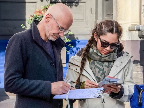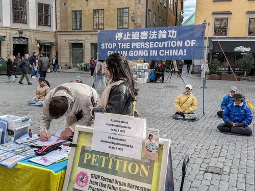 (Minghui.org) Przez dwa tygodnie października 2025 roku, od piątku do niedzieli, praktykujący Falun Dafa w Sztokholmie zorganizowali serię wydarzeń w pobliżu Muzeum Nobla, aby podnieść świadomość na temat Falun Dafa i prześladowań tej pokojowej praktyki duchowej przez Komunistyczną Partię Chin (KPCh).