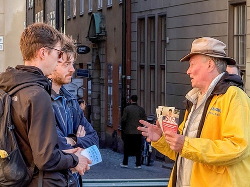 Dziennikarz powiedział, że podziwia praktykujących za odwagę mówienia prawdy. Cieszy się również, że coraz więcej osób przyłącza się do praktykujących, aby przeciwdziałać prześladowaniom. Wyraził nadzieję, że szwedzki rząd wesprze te działania i przypomniał praktykującym, aby dbali o siebie.