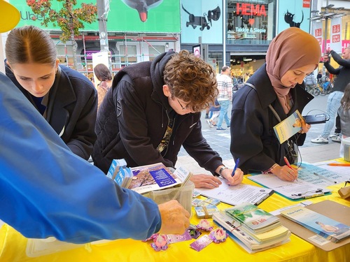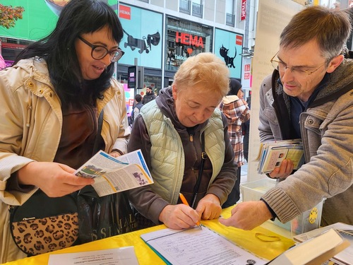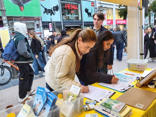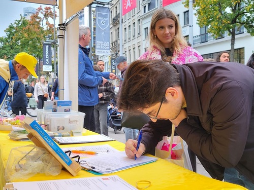 Ludzie podpisują petycję wzywającą do zakończenia prześladowań Falun Dafa przez KPCh