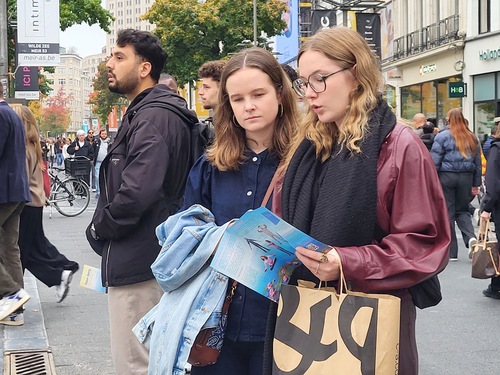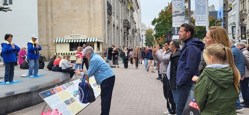 (Minghui.org) Praktykujący przedstawili Falun Dafa i poinformowali ludzi o prześladowaniach ze strony Komunistycznej Partii Chin (KPCh) podczas wydarzenia w dzielnicy handlowej Meir w Antwerpii w Belgii, 11 października 2025 roku. Wielu przechodniów zatrzymało się, aby dowiedzieć się więcej o Falun Dafa i wyrazić swoje poparcie dla zakończenia prześladowań.
