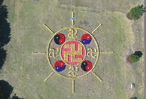 Praktykujący wykonywali ćwiczenia i uformowali symbol Falun w Jubilee Park