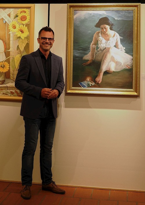Burmistrz Jurgen Sorré przed swoim ulubionym obrazem „Kim jestem?” podczas ceremonii otwarcia 29 września