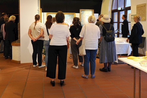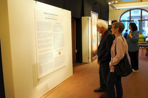 (Minghui.org) „Bardzo wzruszająca i imponująca” – tak wielu odwiedzających opisywało dzieła sztuki na Międzynarodowej wystawie sztuki „Zhen Shan Ren Art” (Prawda-Życzliwość-Cierpliwość), która była prezentowana w dniach 19-28 września 2025 r. w historycznej zbrojowni w Donauwörth. Ponad 500 osób obejrzało dzieła sztuki, niektórzy przypadkowo podczas spaceru po mieście lub podczas wycieczki krajoznawczej, a inni po tym, jak dowiedzieli się o wystawie z ulotek, plakatów, mediów społecznościowych lub gazety.
