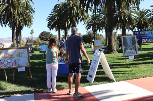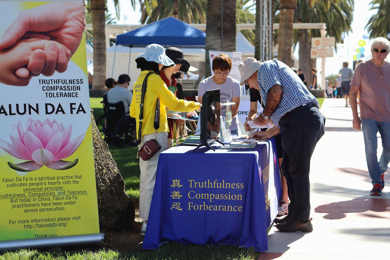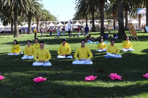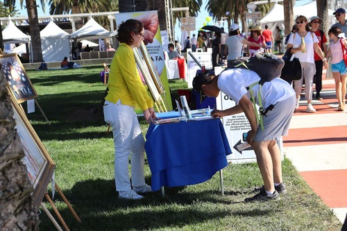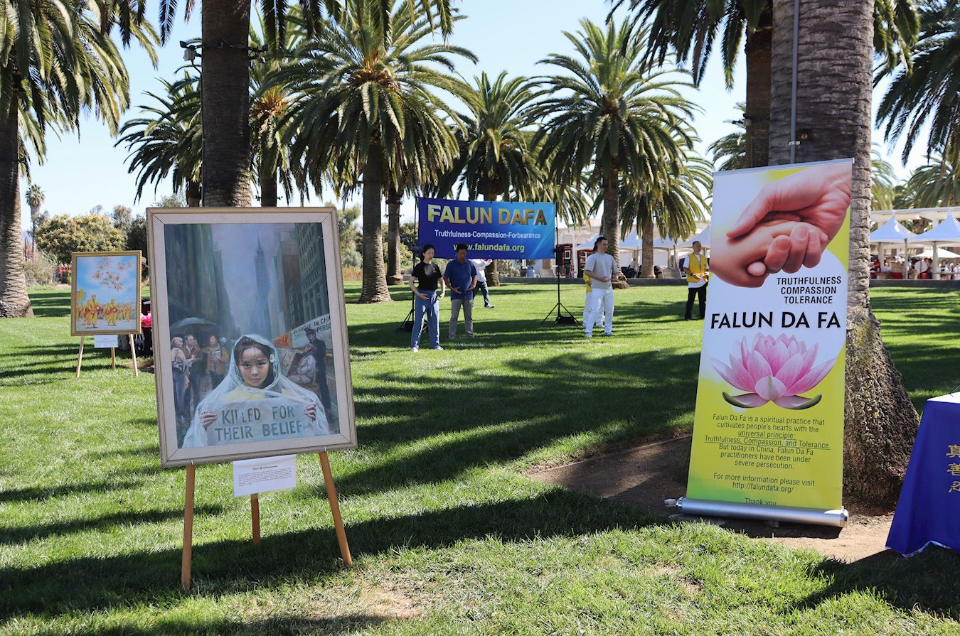 Zaprezentowali pięć ćwiczeń Falun Dafa i wystawili prace artystyczne z Międzynarodowej Wystawy Sztuki Zhen, Shan, Ren, aby zwiedzający mogli dowiedzieć się więcej o praktyce.