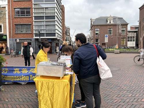 Alphen aan den Rijn to gmina w prowincji Zuid Holland, licząca około 120 000 mieszkańców. Praktykujący ustawili tablice informacyjne wyjaśniające prawdę przy Julianastraat, demonstrowali pięć ćwiczeń Falun Gong, wyjaśniali przechodniom szczegóły prześladowań oraz zbierali podpisy pod petycją wzywającą do zakończenia sankcjonowanego przez państwo procederu grabieży organów przez KPCh. Kilka osób nauczyło się wykonywania ćwiczeń na miejscu.
