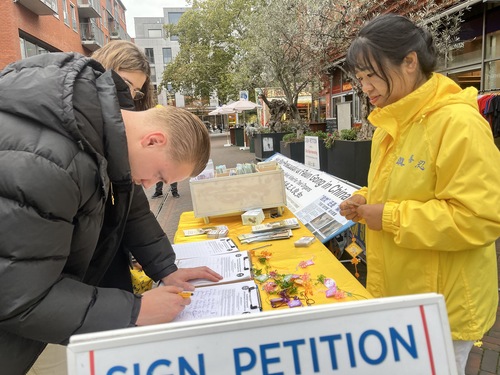 Mieszkańcy Alphen podpisują petycję w celu powstrzymania przymusowego pobierania organów przez Komunistyczną Partię Chin