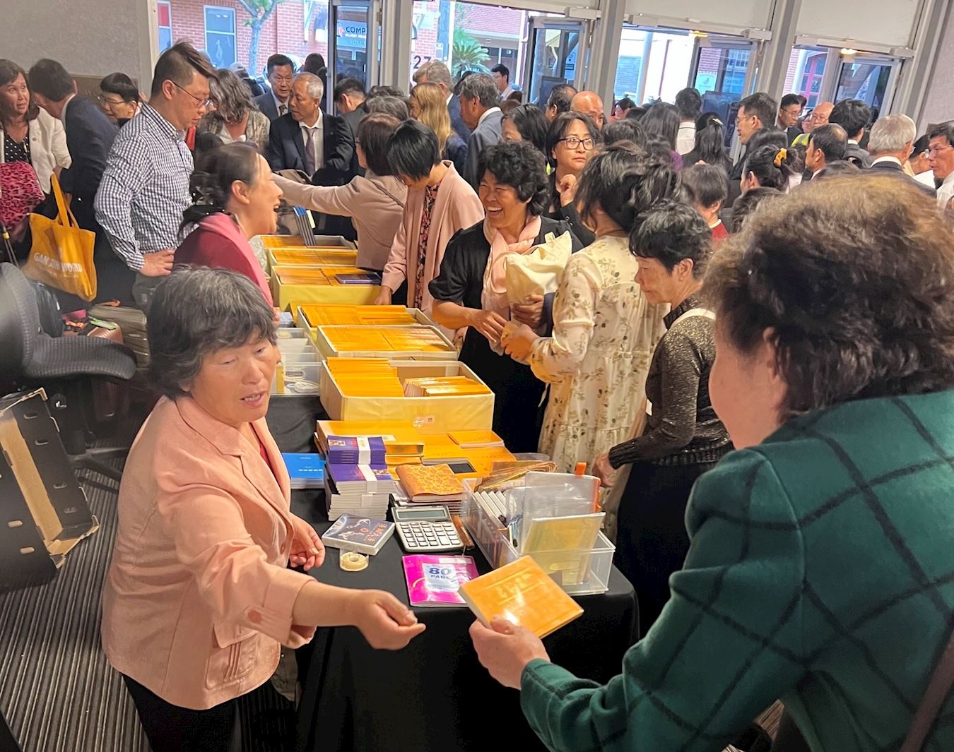 Praktykujący kupują książki Falun Dafa na stoisku księgarni Tianti w przerwie konferencji