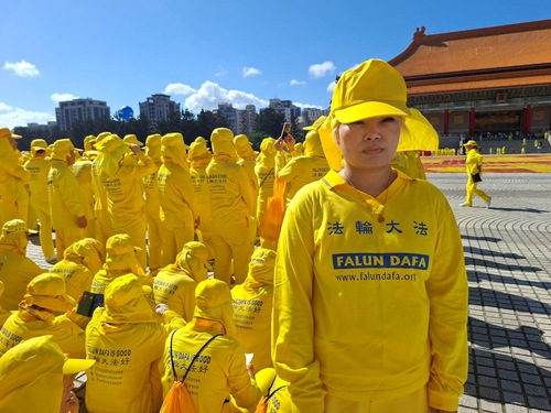 Ponad 5000 praktykujących z Tajwanu, Stanów Zjednoczonych, Kanady, Japonii, Korei Południowej, Hongkongu i innych krajów zebrało się rano 18 października na Placu Wolności w Tajpej, aby utworzyć gigantyczny symbol Falun