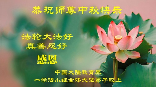 (Minghui.org) Z okazji Święta Środka Jesieni (znanego również jako Święto Księżyca), Minghui otrzymało liczne życzenia Szczęśliwego Święta dla Mistrza Li Hongzhi, założyciela Falun Dafa. Poniżej znajduje się 19 wybranych życzeń od praktykujących pracujących w edukacji w Chinach.