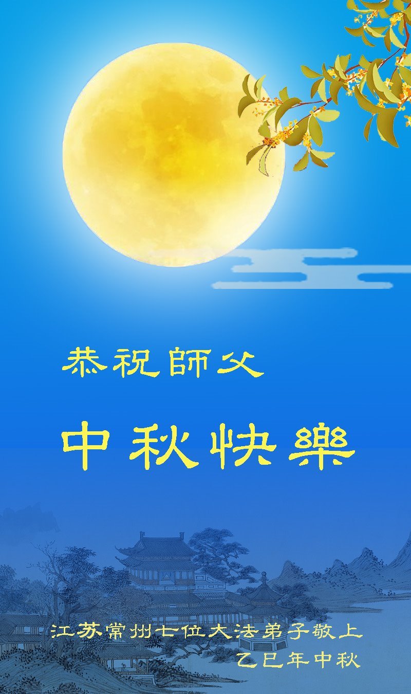 Praktykujący Falun Dafa z prowincji Jiangsu z szacunkiem składają Mistrzowi Li Hongzhi życzenia z okazji Święta Środka Jesieni (19 życzeń)