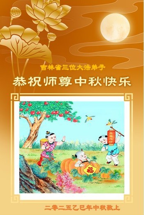 Praktykujący Falun Dafa z prowincji Jilin z szacunkiem składają Mistrzowi Li Hongzhi życzenia z okazji Święta Środka Jesieni (18 życzeń)