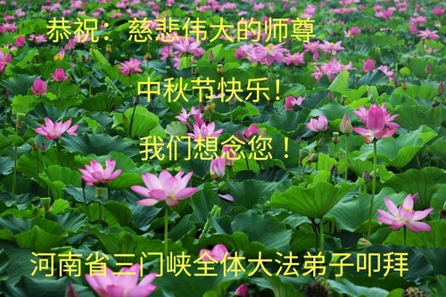 Praktykujący Falun Dafa z prowincji Henan z szacunkiem życzą Mistrzowi Li Hongzhi szczęśliwego Święta Środka Jesieni (22 pozdrowienia)