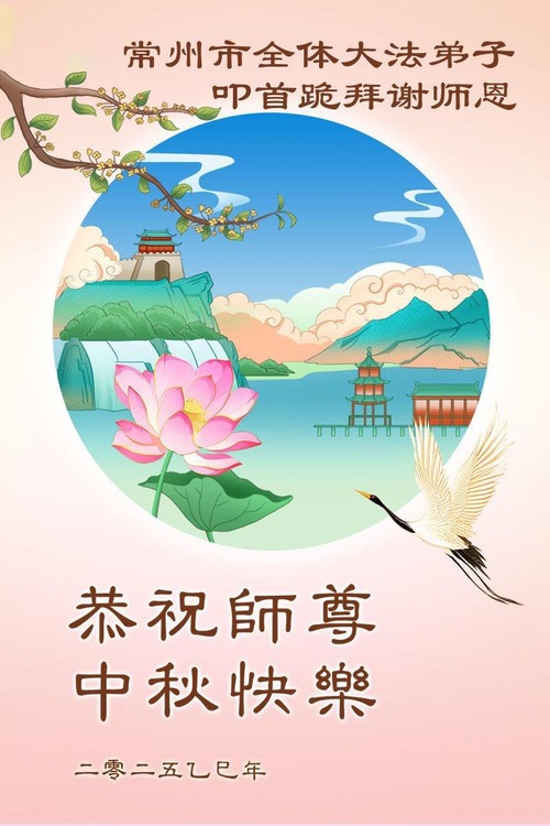 Praktykujący Falun Dafa z prowincji Jiangsu z szacunkiem składają Mistrzowi Li Hongzhi życzenia z okazji Święta Środka Jesieni (18 życzeń)