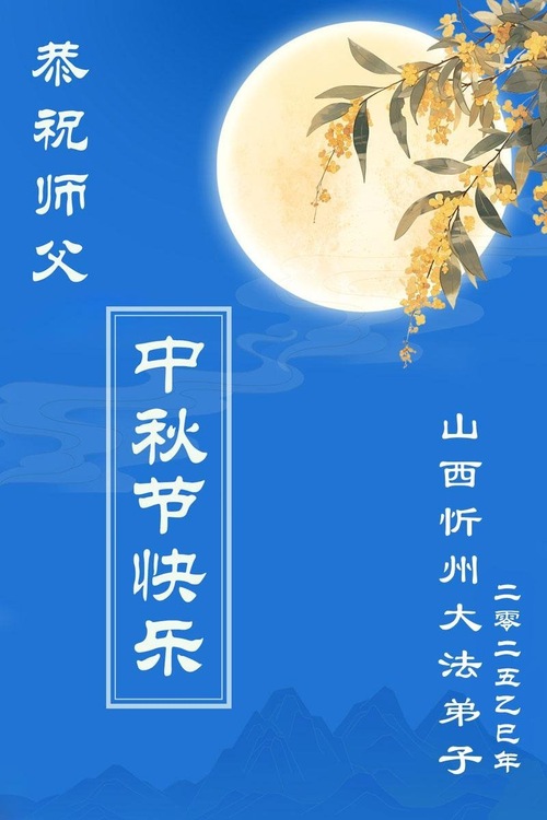 Praktykujący Falun Dafa z prowincji Shanxi składają Czcigodnemu Mistrzowi życzenia z okazji Święta Środka Jesieni!