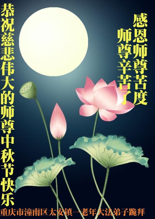 Praktykujący Falun Dafa z Chongqing z szacunkiem składają Mistrzowi Li Hongzhi życzenia Szczęśliwego Święta Środka Jesieni (22 pozdrowienia)