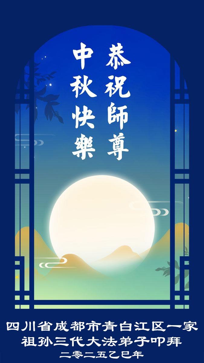 Praktykujący Falun Dafa z miasta Chengdu z szacunkiem składają Mistrzowi Li Hongzhi życzenia Szczęśliwego Święta Środka Jesieni (19 pozdrowień)