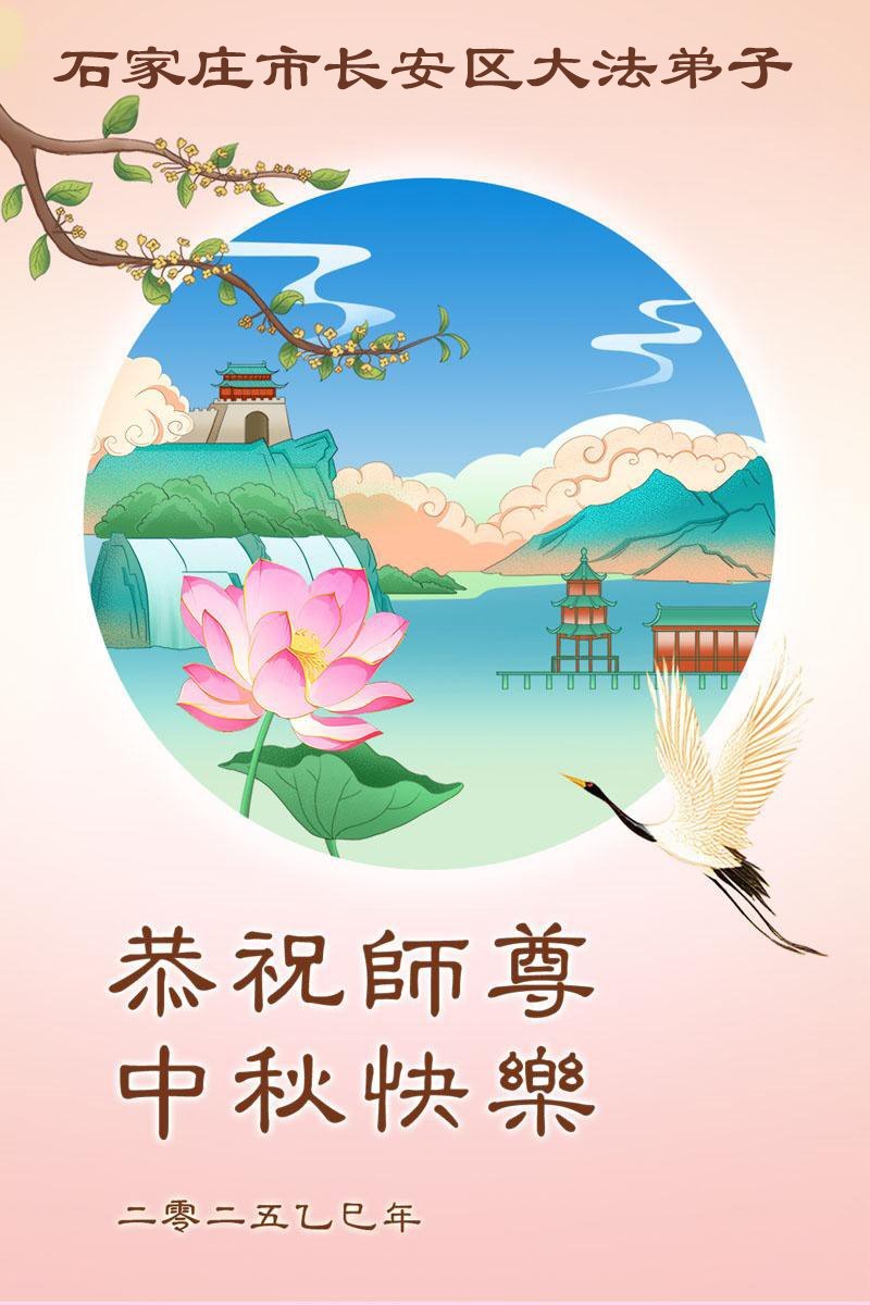 Praktykujący Falun Dafa z miasta Shijiazhuang z szacunkiem składają Mistrzowi Li Hongzhi życzenia z okazji Święta Środka Jesieni (18 pozdrowień)