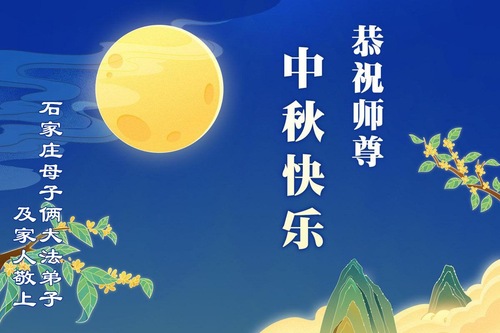 Praktykujący Falun Dafa z miasta Shijiazhuang życzą Czcigodnemu Mistrzowi Wesołych Świąt Środka Jesieni!