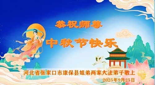 Praktykujący Falun Dafa z miasta Zhangjiakou z szacunkiem składają Mistrzowi Li Hongzhi życzenia z okazji Święta Środka Jesieni (19 pozdrowień)