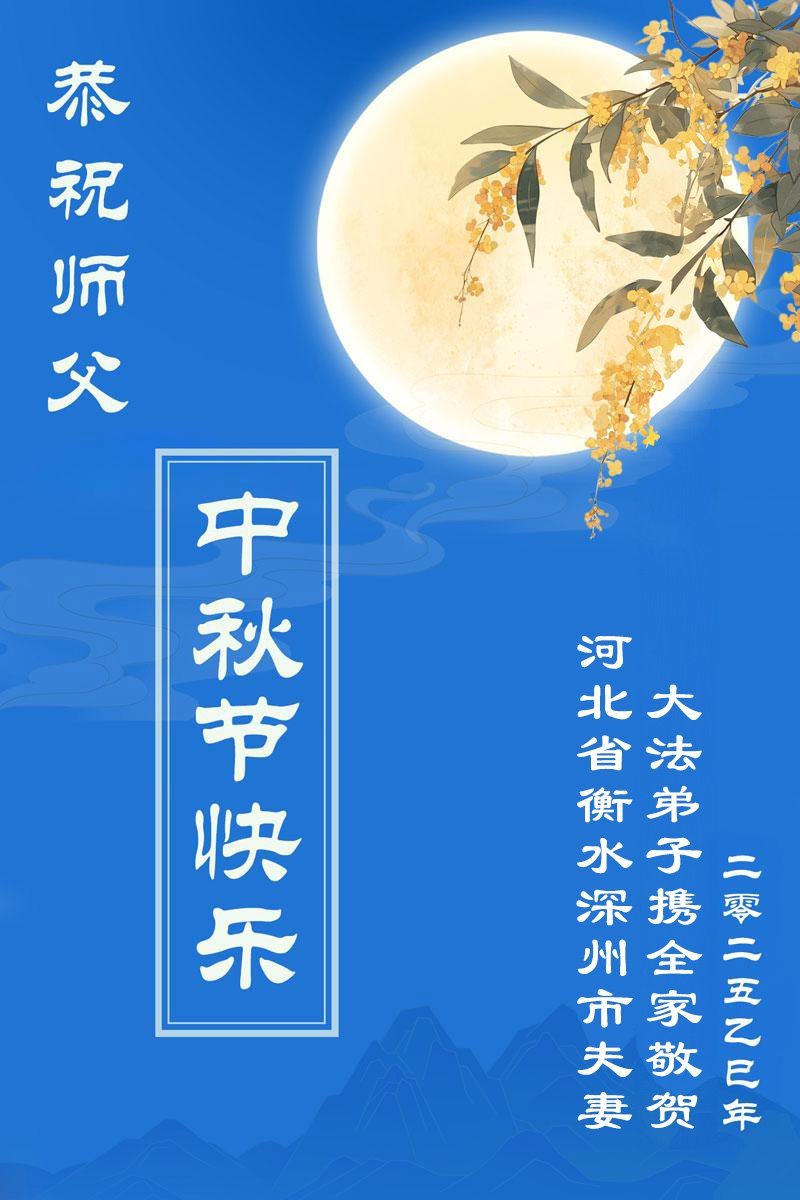 Praktykujący Falun Dafa z prowincji Hebei z szacunkiem składają Mistrzowi Li Hongzhi życzenia Szczęśliwego Święta Środka Jesieni (18 pozdrowień)