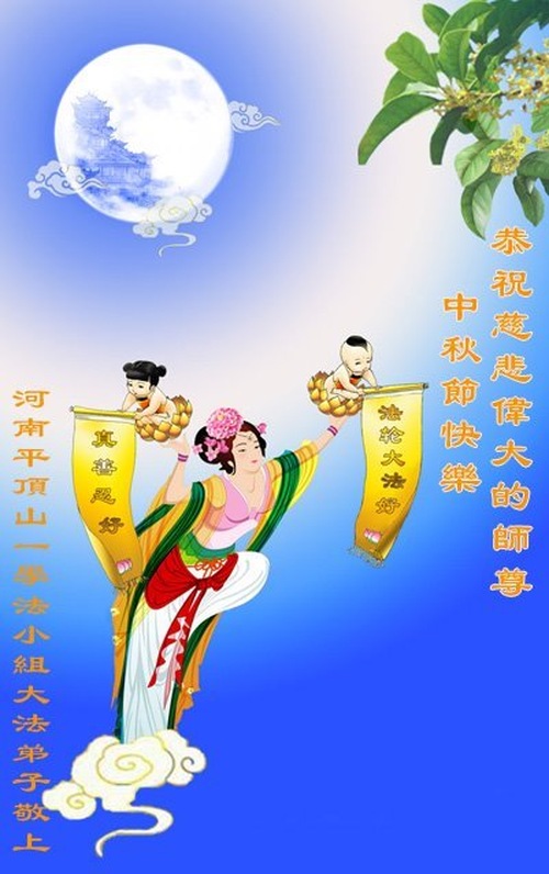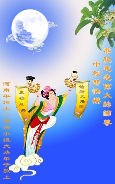 Praktykujący Falun Dafa z prowincji Henan życzą Czcigodnemu Mistrzowi Wesołego Święta Środka Jesieni!