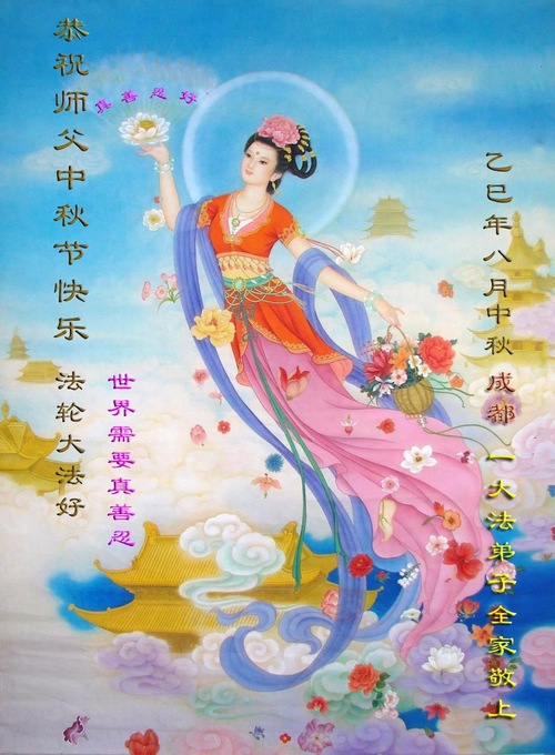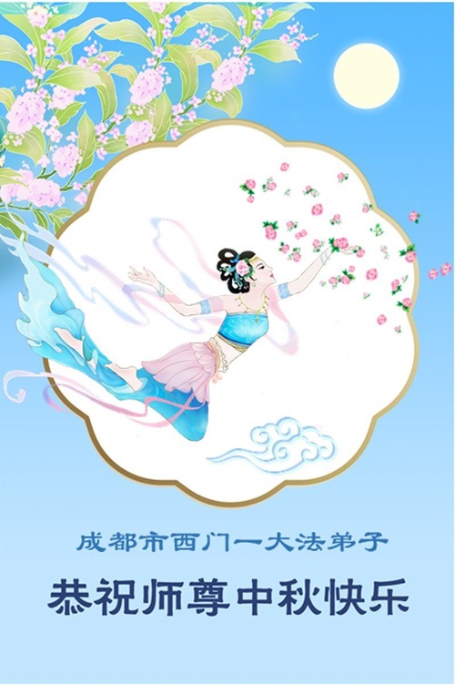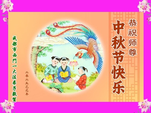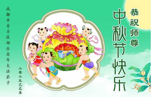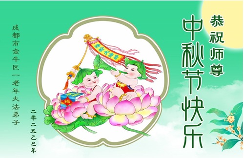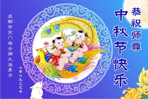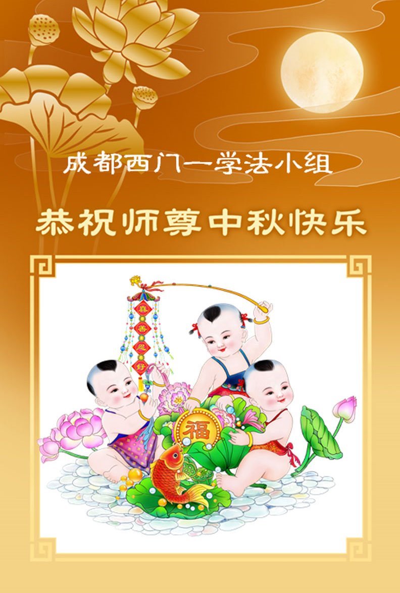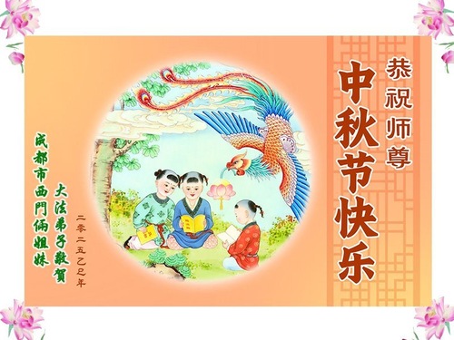 Praktykujący Falun Dafa z miasta Chengdu życzą czcigodnemu Mistrzowi szczęśliwego Święta Środka Jesieni!