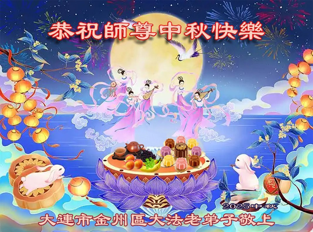 Praktykujący Falun Dafa z Dalian z szacunkiem życzą Mistrzowi Li Hongzhi szczęśliwego Święta Środka Jesieni (20 życzeń)