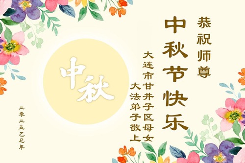 Praktykujący Falun Dafa z Dalian z szacunkiem życzą Mistrzowi Li Hongzhi szczęśliwego Święta Środka Jesieni (22 pozdrowienia)