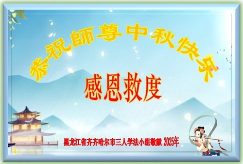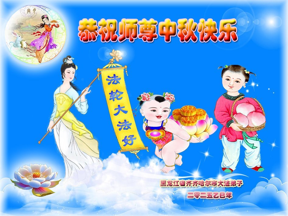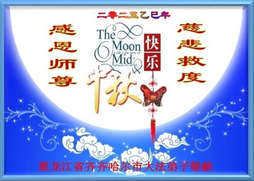 Praktykujący Falun Dafa z miasta Qiqihar z szacunkiem życzą mistrzowi Li Hongzhi szczęśliwego Święta Środka Jesieni (19 pozdrowień)
