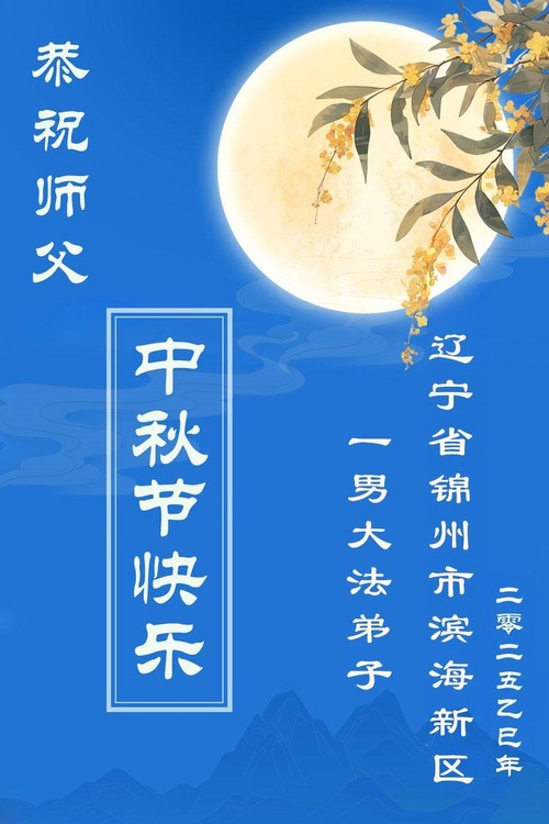Praktykujący Falun Dafa z Jinzhou z szacunkiem życzą Mistrzowi Li Hongzhi szczęśliwego Święta Środka Jesieni (18 życzeń)
