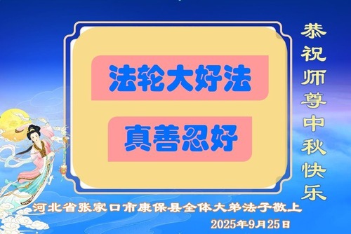 Praktykujący Falun Dafa z miasta Zhangjiakou z szacunkiem życzą Mistrzowi Li Hongzhi szczęśliwego Święta Środka Jesieni (18 życzeń)