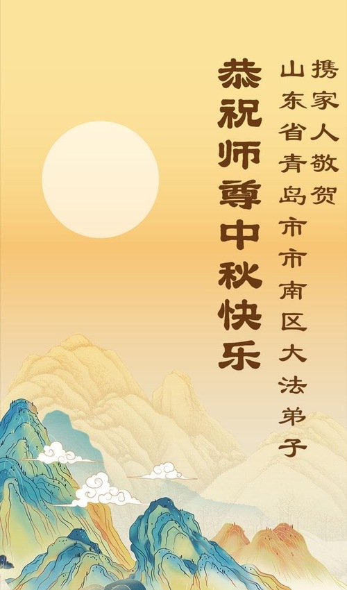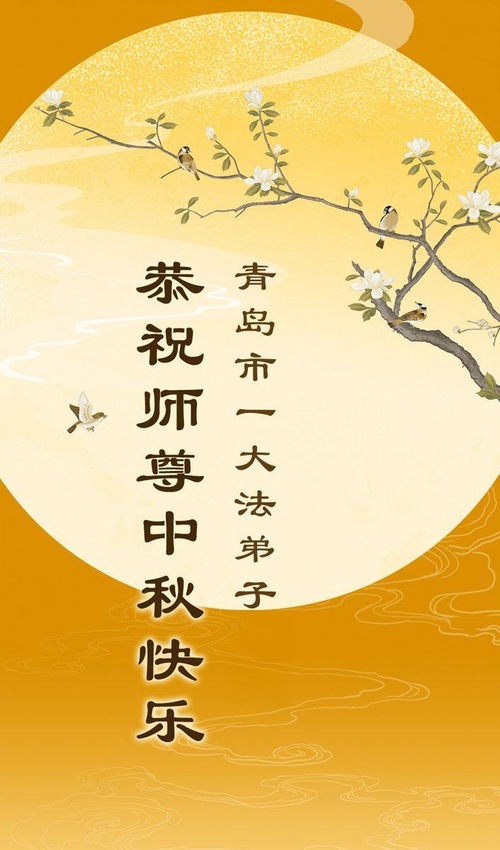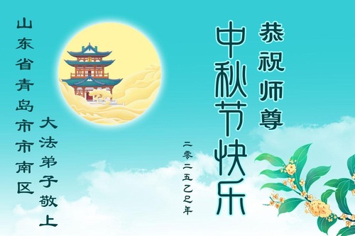 Praktykujący Falun Dafa z miasta Qingdao z szacunkiem życzą Mistrzowi Li Hongzhi szczęśliwego Święta Środka Jesieni (18 życzeń)