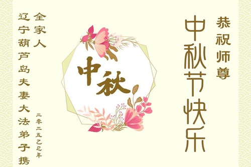 Praktykujący Falun Dafa z miasta Huludao z szacunkiem życzą Mistrzowi Li Hongzhi szczęśliwego Święta Środka Jesieni (23 pozdrowienia)