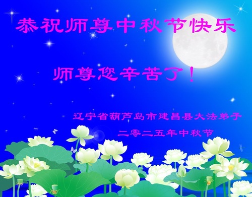 Praktykujący Falun Dafa z miasta Huludao życzą Czcigodnemu Mistrzowi szczęśliwego Święta Środka Jesieni!