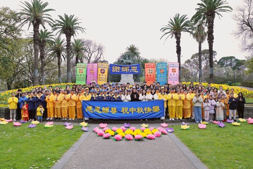 Praktykujący w Melbourne w Australii życzą Mistrzowi szczęśliwego Święta Środka Jesieni
