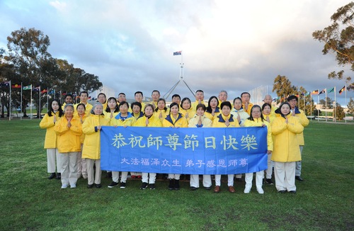 Praktykujący w Canberze w Australii życzą Mistrzowi szczęśliwego Festiwalu Środka Jesieni