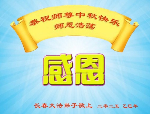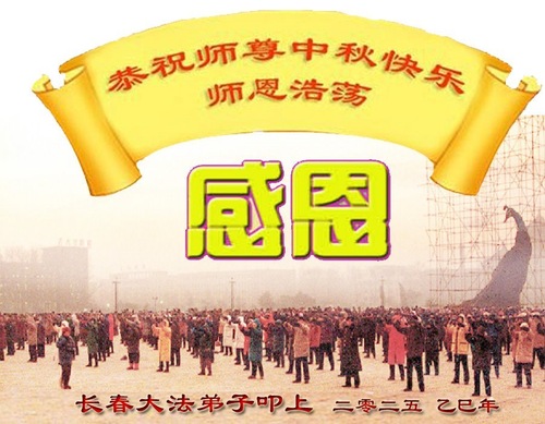 Praktykujący Falun Dafa z miasta Changchun życzą Czcigodnemu Mistrzowi Wesołych Świąt Środka Jesieni!