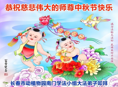 Praktykujący Falun Dafa z miasta Changchun życzą Czcigodnemu Mistrzowi Wesołych Świąt Środka Jesieni!
