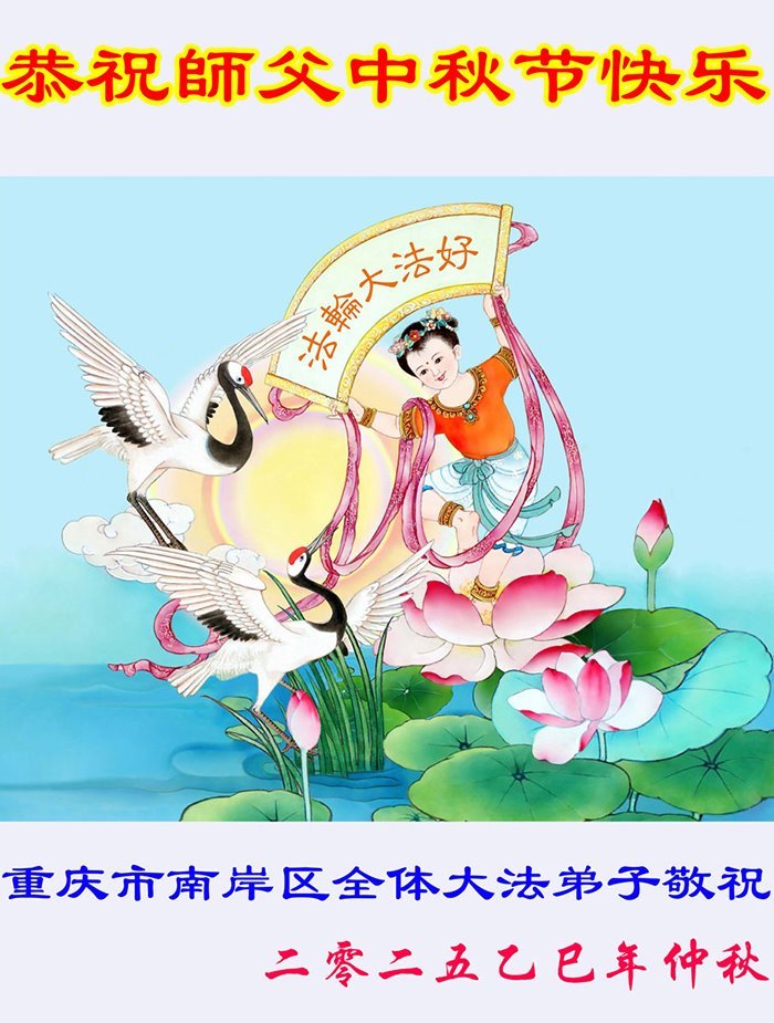 Praktykujący Falun Dafa z Chongqing z szacunkiem składają Mistrzowi Li Hongzhi życzenia Szczęśliwego Święta Środka Jesieni (19 pozdrowień)