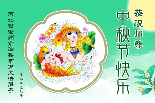 Praktykujący Falun Dafa z prowincji Hebei życzą Czcigodnemu Mistrzowi Wesołego Święta Środka Jesieni!