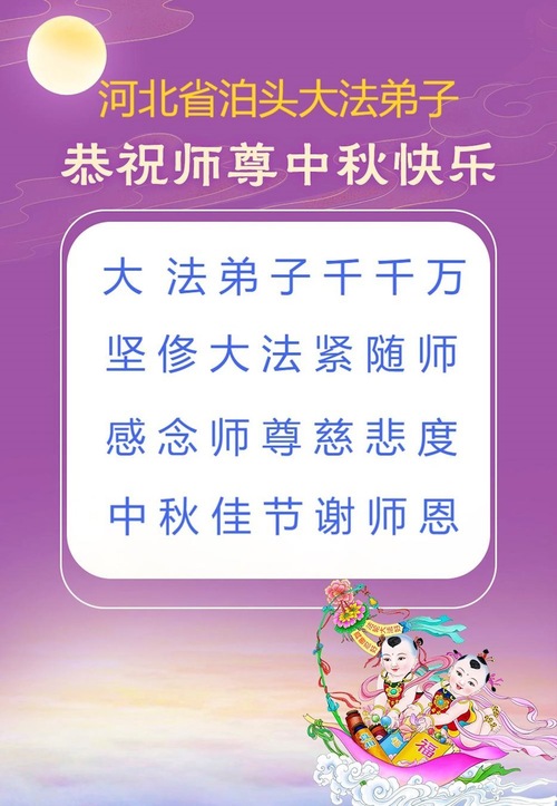Praktykujący Falun Dafa w prowincji Hebei z szacunkiem składają Mistrzowi Li Hongzhi życzenia z okazji Święta Środka Jesieni (19 pozdrowień)