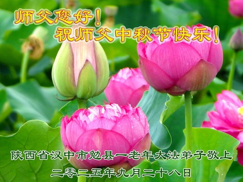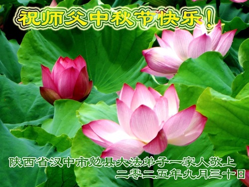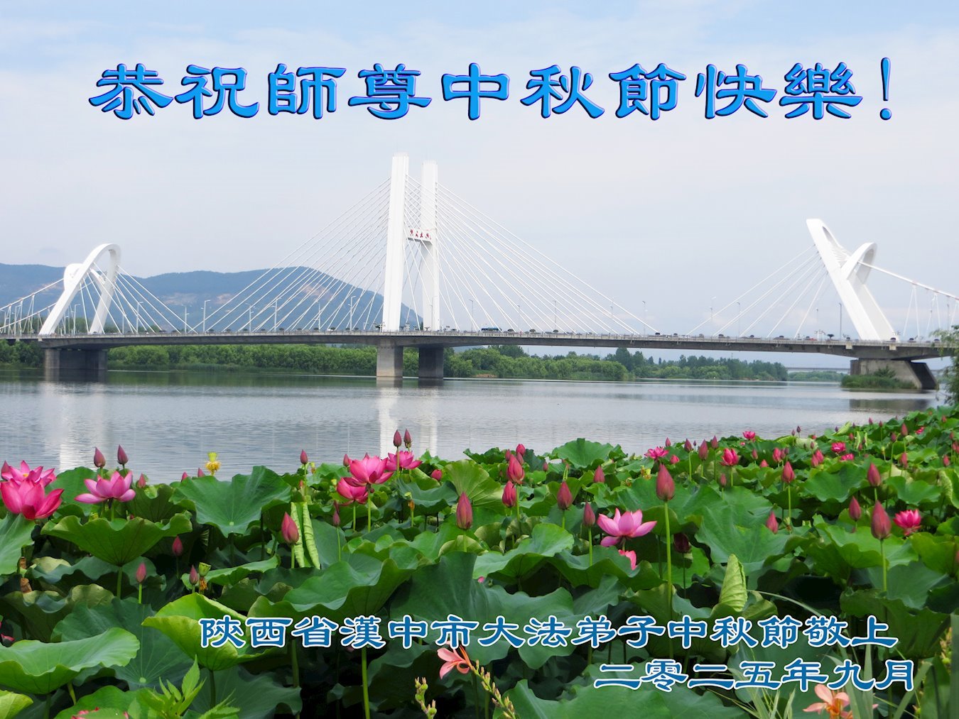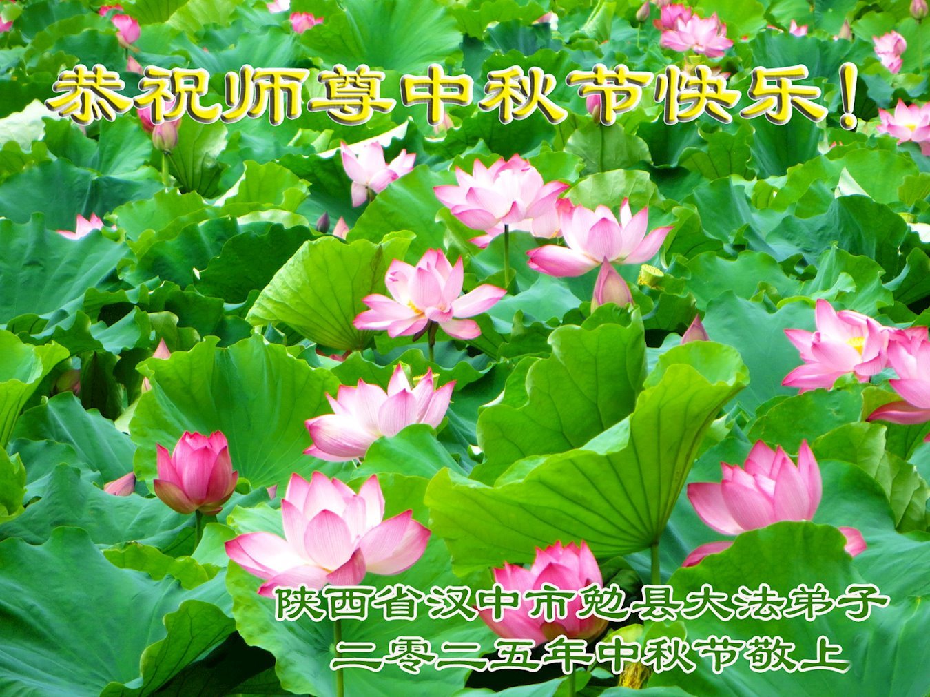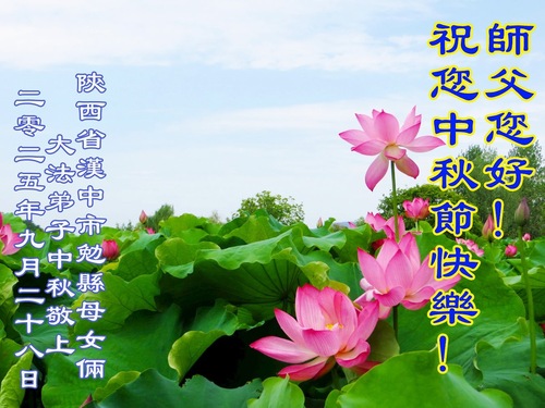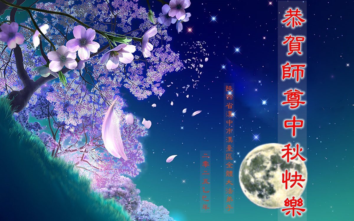 Praktykujący Falun Dafa z prowincji Shaanxi życzą Czcigodnemu Mistrzowi Wesołego Święta Środka Jesieni!