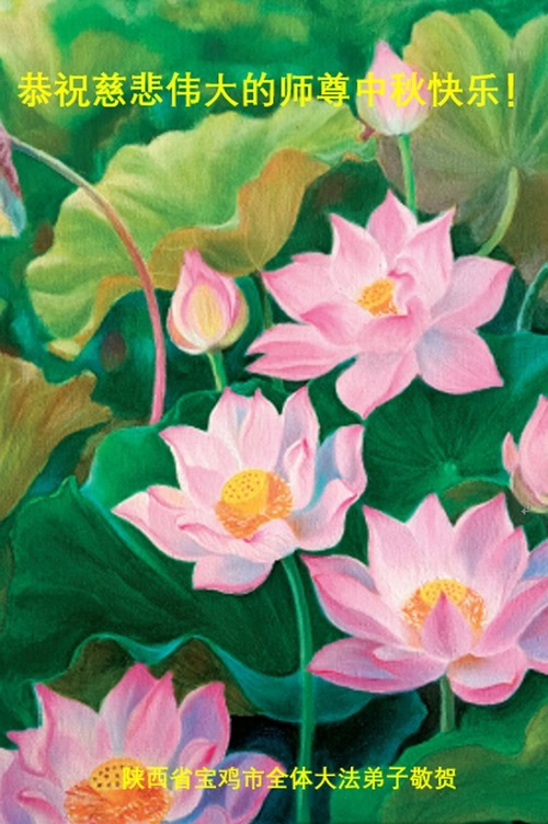 Praktykujący Falun Dafa w prowincji Shaanxi z szacunkiem składają Mistrzowi Li Hongzhi życzenia z okazji Święta Środka Jesieni (18 pozdrowień)