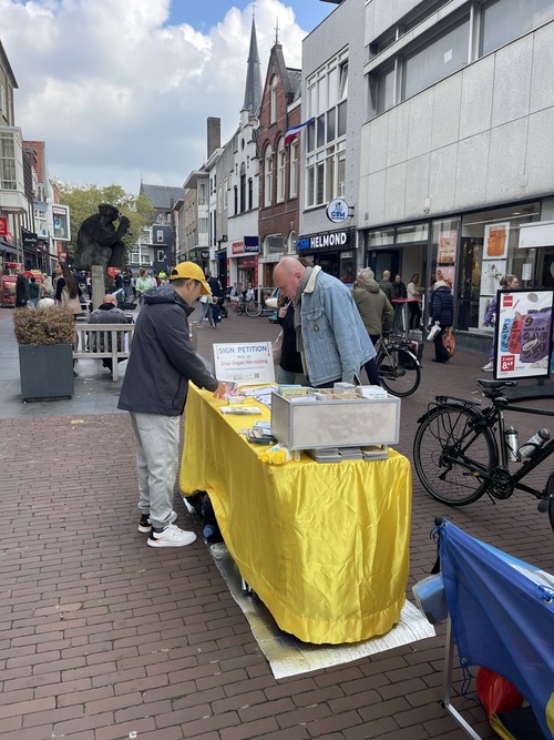 (Minghui.org) W sobotę 27 września 2025 r. objazdowe centrum wyjaśniania prawdy w Holandii zawitało do Helmond, miasta na południu Holandii.